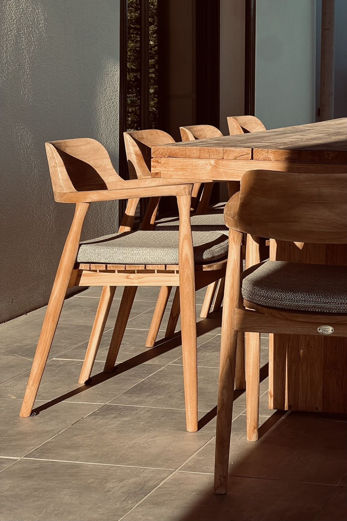 Fauteuil "Nordique". En bois de teck massif Indonésien, de plantation "premium". Le bois est à l'état brut, naturel.
